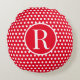 Classic Red Custom initial letter Polka Dot Round Cushion