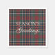 This elegant paper napkin features a plaid pattern with the classic "Season's Greetings" message. It showcases shades of green, dark blue, and red, evoking a classy and nostalgic English holiday ambiance. It is perfect for decorating a Christmas-themed table setting in a classic colonial-style home, as well as in a country cottage, log cabin, or vacation home by a lake or river.