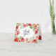 Elegant design with deep red florals and trailing greenery with Thank you. Inside has similar floral pattern at bottom portion of card.