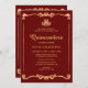 Classic Quinceañera Invitation. With script font, tiara, and red and gold colour design.