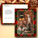 This classic and traditional holiday greeting features a one-photo portrait-aspect photo template with a gold border and two text fields on a rich red, green and gold diagonal Christmas plaid background.