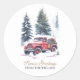 Classic Red Jeep snow Christmas Tree Personalised Round Sticker