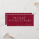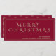 A simple holiday card that says Merry Christmas in a decorative faux metallic font. Add your family name plus the first names for a holiday card that is unique. In red and gold, it's a traditional card. The reverse has gold snowflakes.