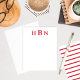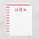 Timeless and elegant custom flat note card design features red letters that can be personalised with the first, last, and middle name initials in classic serif type. Space for your handwritten note is included and the back of the card features a handsome pattern of horizontal red and white stripes.