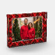 A classic red plaid tartan pattern behind your horizontal holiday family photograph for a festive, traditional Christmas photo plaque keepsake. Simple and beautiful Christmas gift.
