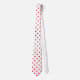 Polka dots! One of the classic apparel patterns that looks great on ties. This polka dot necktie features small red dots on white.