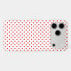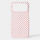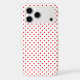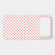 Red polka dots on a white background.