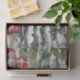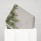 This watercolor features a classic red truck hauling a load of Christmas greenery through a snowy landscape.