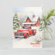 Classic red truck snowy cosy Christmas scene Holiday Card