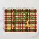 This holiday card stands out with its unique and elegant design. It features a classic "Merry Christmas" greeting printed in real gold foil, along with a reindeer and snowflakes. The card is enhanced by a striking plaid pattern in a sophisticated colour scheme of dark green, red, beige, and tan. The front of the card provides space for your family name and the current year, while the back offers an excellent opportunity to include a personalised seasonal greeting or poem, making your message truly memorable. This card is the perfect choice for conveying your holiday wishes in style.