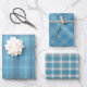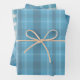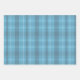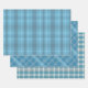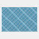 Set of three wrapping paper sheets. Each sheet features a different plaid pattern in shades of blue and grey.