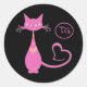 Classic Retro Pink Kitty Cat Heart Tail Monogram Round Sticker