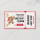 This vintage-inspired discount coupon features a quirky cartoon fried chicken bucket character and a classic ticket design, reminiscent of retro movie tickets. The bold colours and playful typography make it a fun and eye-catching addition to any marketing campaign.