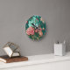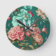 Classic Romantic Teal and Pink Floral Monogrammed Round Clock