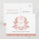 Classic Rose Gold Crest Wedding Thank You Postcard