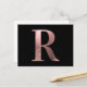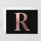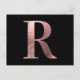 Classic Rose Gold Foil Monogram R on Black Postcard