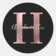 Classic Rose Gold Foil Wedding Monogram H Black Round Sticker