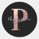 Classic Rose Gold Foil Wedding Monogram P Black Round Sticker