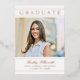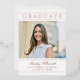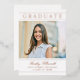 Celebrate your graduate with this timeless graduation party invitation featuring "Graduate" in rose gold foil spaced serif lettering with refined horizontal line accents, framing a senior portrait on white. The back displays "Graduation Party" event details with a second bordered photo in elegant black script and serif typography. All text is fully customisable, including the graduate's name, school, class year, and event details.