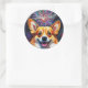 Classic Round Stickers with Rainbow Color Fireworks and Playful Corgi