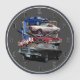 This is a rendering of a set of classic cars created using coloured pencils and markers with a retro styled background.