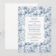 Make a lasting first impression with this French toile de Jouy wedding invitation, beautifully designed to showcase the best printing quality available on Zazzle. Featuring intricate floral patterns in rich navy, royal, dusty, and deep blue tones, this invitation blends timeless European elegance with refined modern presentation.