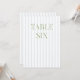 This elegant table number features a soft blue striped background with refined sage green serif typography and subtle script accents. Designed for garden weddings, refined receptions, and timeless outdoor celebrations.
