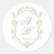Classic Sage Green Floral Monogram Crest Wedding Round Sticker