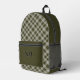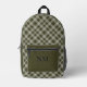 This stylish and versatile backpack features a sophisticated diagonal plaid pattern in shades of dark sage green and white, making it a perfect accessory for both casual and professional settings. The front pocket is adorned with customisable monogram initials, allowing for a personalised touch that can be easily modified or removed by clicking "Personalise this template." The backpack is designed with practicality in mind, offering ample storage space with a large main compartment and a convenient front zippered pocket for easy access to smaller items. Additionally, a side mesh pocket provides a handy spot for a water bottle or other essentials. The durable fabric and sturdy construction ensure that this backpack can withstand daily use, making it an ideal choice for students, professionals, or anyone on the go. The sleek design and customisable feature make it a thoughtful gift for friends, family, or colleagues.