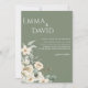 The soft sage green background pairs effortlessly with the delicate ivory flower accents, offering a timeless look that suits spring, summer, or fall weddings.