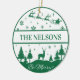This fun green and white Christmas ornament will be a family keepsake for years to come. The classic design features Santa and his reindeer flying through the night over a deer surrounded by pine trees with the words "Be Merry". Personalise by adding your family name or special text.