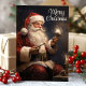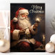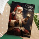 Classic Santa By Candlelight Merry Christmas Holiday Card