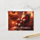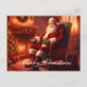This charming Christmas postcard features a classic and heartwarming holiday scene that's sure to bring a smile to anyone's face. At the centre, you'll find Santa Claus, dressed in his traditional red suit with white fur trim and black boots, comfortably seated in a cosy armchair. The background radiates festive warmth, showcasing a beautifully decorated Christmas tree, a glowing fireplace adorned with stockings, and an array of candles and garlands that enhance the holiday spirit. The soft glow from the fireplace and the inviting lighting create a cosy and magical atmosphere. At the bottom of the postcard, "Merry Christmas" is elegantly written in a stylish, cursive font. The text is fully customisable, allowing you to add your own personal holiday message or greeting.
