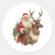 Classic Santa Claus Riding a Reindeer Christmas Round Sticker