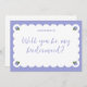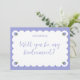 Ask your girls in style with this romantic bridesmaid proposal card, featuring soft periwinkle tones, elegant scalloped edges, and delicate hydrangea illustrations in each corner. The handwritten script question paired with a customisable name creates a refined yet personal look—perfect for spring and summer weddings with a garden, floral, coastal, or vintage theme. Thoughtful and on-trend, this card adds a sweet touch to your bridal party proposal.