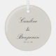 Celebrate timeless elegance with this classic script ivory wedding glass ornament. Featuring a sophisticated ivory backdrop and beautifully crafted script, this ornament exudes charm and grace. It's the perfect way to commemorate your special day, offering a subtle yet elegant addition to your holiday decor. Whether hung on your tree or displayed year-round, this keepsake ornament serves as a lasting reminder of your wedding day’s elegance and love.