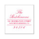 Easily personalise these custom Classic Script Family Name Return Address self-inking rubber stamps with your own names and address. To customise these rubber stamps, click on "Personalise this template" and change the text in the boxes provided. Available in 9 different colours and 6 sizes. Please view your design on the monitor as close to actual size as possible to ensure that the text prints at the expected size. For use as a return address stamp most people will require a larger size. These return address self-inking rubber stamps stamp up to 10000 impressions with each cartridge, have a soft touch for secure grip and ink-free fingers and an eco-friendly manufacturing process. No minimum order quantity.