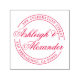 Easily personalise these custom Classic Script Names Round Return Address self-inking rubber stamps with your own names and address. To customise these rubber stamps, click on "Personalise this template" and change the text in the boxes provided. Available in 9 different colours and 6 sizes. Please view your design on the monitor as close to actual size as possible to ensure that the text prints at the expected size. For use as a return address stamp most people will require a larger size. These return address self-inking rubber stamps stamp up to 10000 impressions with each cartridge, have a soft touch for secure grip and ink-free fingers and an eco-friendly manufacturing process. No minimum order quantity.
