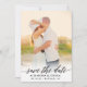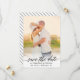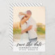 This elegant save the date features shimmering script with a striped backer and lots of room for additional wedding information, like your wedding website or accommodations details. Upload your own photo and customise the information to include your wedding details.