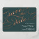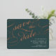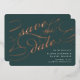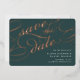 Elegant wedding save the date cards in rich forest green feature "save the date" in luxe rose gold foil script lettering for a bold and unforgettable look. Personalise with your wedding details in classic white lettering, and add additional information to the back.