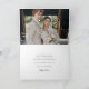 Elegant 5x7" wedding thank you cards feature a single horizontal or landscape orientated wedding photo with "Thank You" overlaid at the bottom in chic white calligraphy script. Personalise with your names and wedding date in classic block lettering. Add a personal message and signature to the inside, along with an additional photo. Available professionally printed or as a digital download for local printing,
