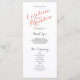 Gorgeous coral pink and charcoal grey script typography on a white background make these elegant modern wedding programs stand out. Design by Elke Clarke © Customise with your background colour and all your personal information to a luxury wedding program which your ushers can hand out as your guests enter the church or are seated where the ceremony will take place. It helps people follow along during the ceremony but also acts as a keepsake for your guests. You can use the template fields to fill in the suggested information about your wedding party and order of service and thank you message or select "customise it" and use the edit menu to change the text spacing, fonts, colours as you wish to create your own wedding programs.