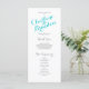 A beautiful turquoise and grey script typography on a white background make these elegant modern wedding programs stand out. Design by Elke Clarke © Customise with your background colour and all your personal information to a luxury wedding program which your ushers can hand out as your guests enter the church or are seated where the ceremony will take place. It helps people follow along during the ceremony but also acts as a keepsake for your guests. You can use the template fields to fill in the suggested information about your wedding party and order of service and thank you message or select "customise it" and use the edit menu to change the text spacing, fonts, colours as you wish to create your own wedding programs.
