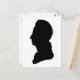 A reproduction of a classic bust silhouette portrait of an unidentified man facing left. He is wearing a wig (or hat) high on his head as was the style in the late 1700's to early 1800's. The original sihouette portrait was created by artist Charles Willson Peale around 1761 and 1827.