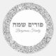 Classic Silver Glitter Hebrew Happy Purim Round Sticker