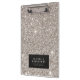 Coordinates with the Classic Silver Glitter Makeup Artist Business Card Template by 1201AM. A classic styling of your name or business name is set on a faux silver glitter background on this personalised clipboard. © 1201AM Design Studio