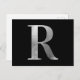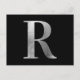 Classic Silver Grey Foil Monogram R on Black Postcard
