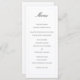 With classic elegance and timeless appeal, this wedding menu has lovely script title text with classic serif text conveying your menu selections. A simple silver-grey border frames your text with timeless style and charm. The remaining text on the front of the menu is set up in an easy to use template where you can edit with your planned menu. You can add or delete lines of text, resize or change the font style as well as move the text around to suit your requirements. To simplify the customisation of this menu, first select "personalise this template" to edit the text shown in the design template with your entries. Then, choose "edit using design tool" to open the full editor and make additional changes if needed.