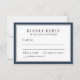 A tasteful wedding RSVP card with classic simplicity, this design features a navy blue border framing your text to draw the attention towards the details displayed on the response card. You can add, remove or adjust the placement of the text to suit your needs. The ever popular navy blue and white colour scheme work well for weddings in any season of the year and any time of the day or evening. Personalise the text template with your required response date.