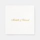 Classic simple bride and groom names in gold script wedding paper napkins.